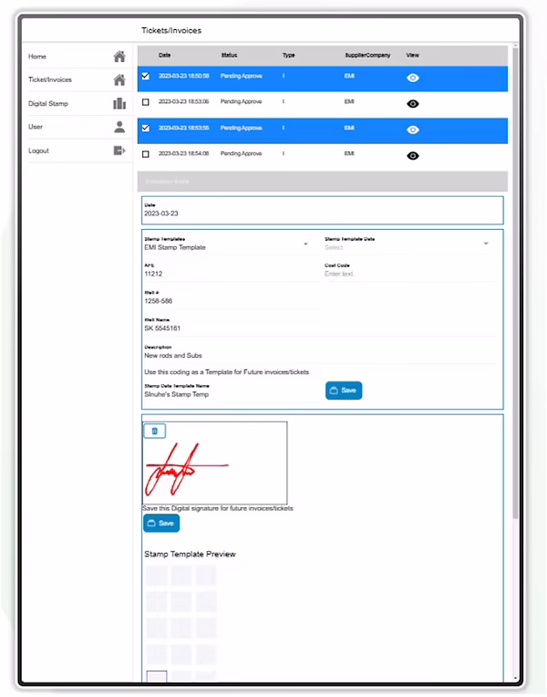 - Facilitating efficient signing and coding of your Tickets and Invoices.